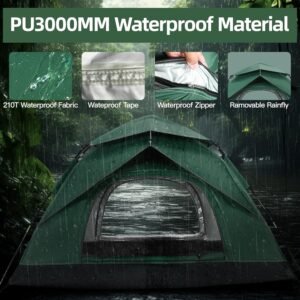 【3-Season Weather Protection】 Built for adventures in spring, summer, and fall. Made with waterproof polyester and fully taped seams to keep you dry. UV-resistant fabric and a sturdy frame offer reliable shelter from sun and winds.
