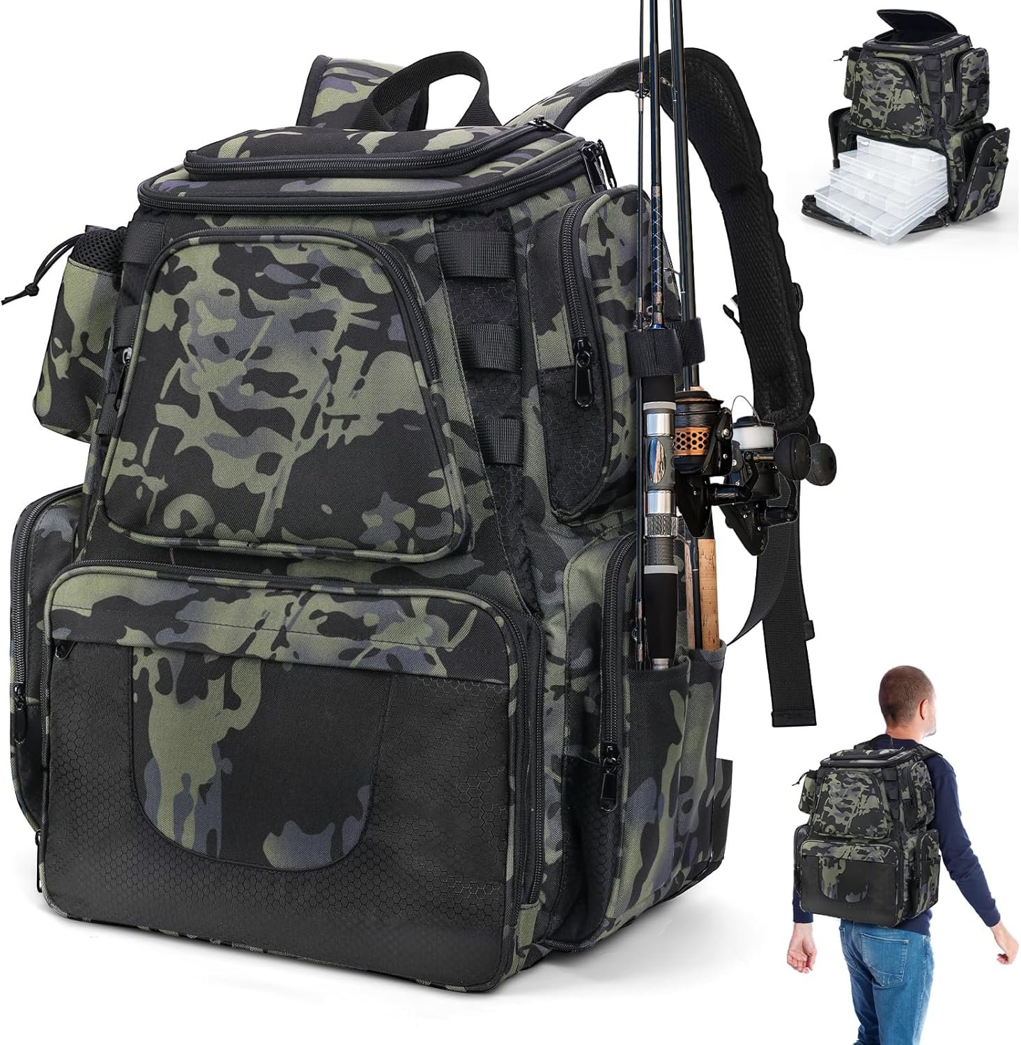 SAFETY & COMFORTABLE: The fishing rucksack is equipped with sponge shoulder straps and a sponge lining on the back for a snug. Special locking buckle design of the belt makes the bag more secure, and there is also a pole insertion design, which can fix the fishing pole, making it more convenient for travel afar. Adjustable zipper shoulder straps can be adjusted to the most comfortable length, comfort and ultra-convenience. Free and flexible use to make your travelling with peace of mind.