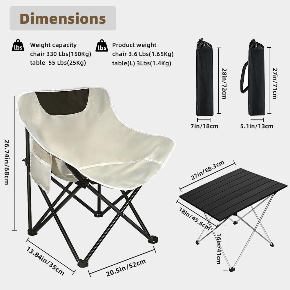 【Comfortable & Quality】Our ultralight chair Made of 600D Oxford ripstop ballistic nylon, to be real rip-proof.The chairs in this set feature ergonomic designs, providing ample support and comfort during extended use.The table offers enough area for putting magazine, snack, picnic food, beverages.