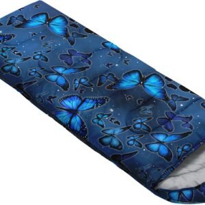SUITABLE:The sleeping bag can be used for 3 Seasons.SIZE:90.5″L x 31.5″W Suggenal extreme temperature: 41 ℉ -77 ℉.Applicable in a variety of scenarios,such as Travel camping pajamas party,It’s very suitable for you to travel with your children.Half-circle hood with adjustable drawstring,which can keep you warm and prevent your humidity