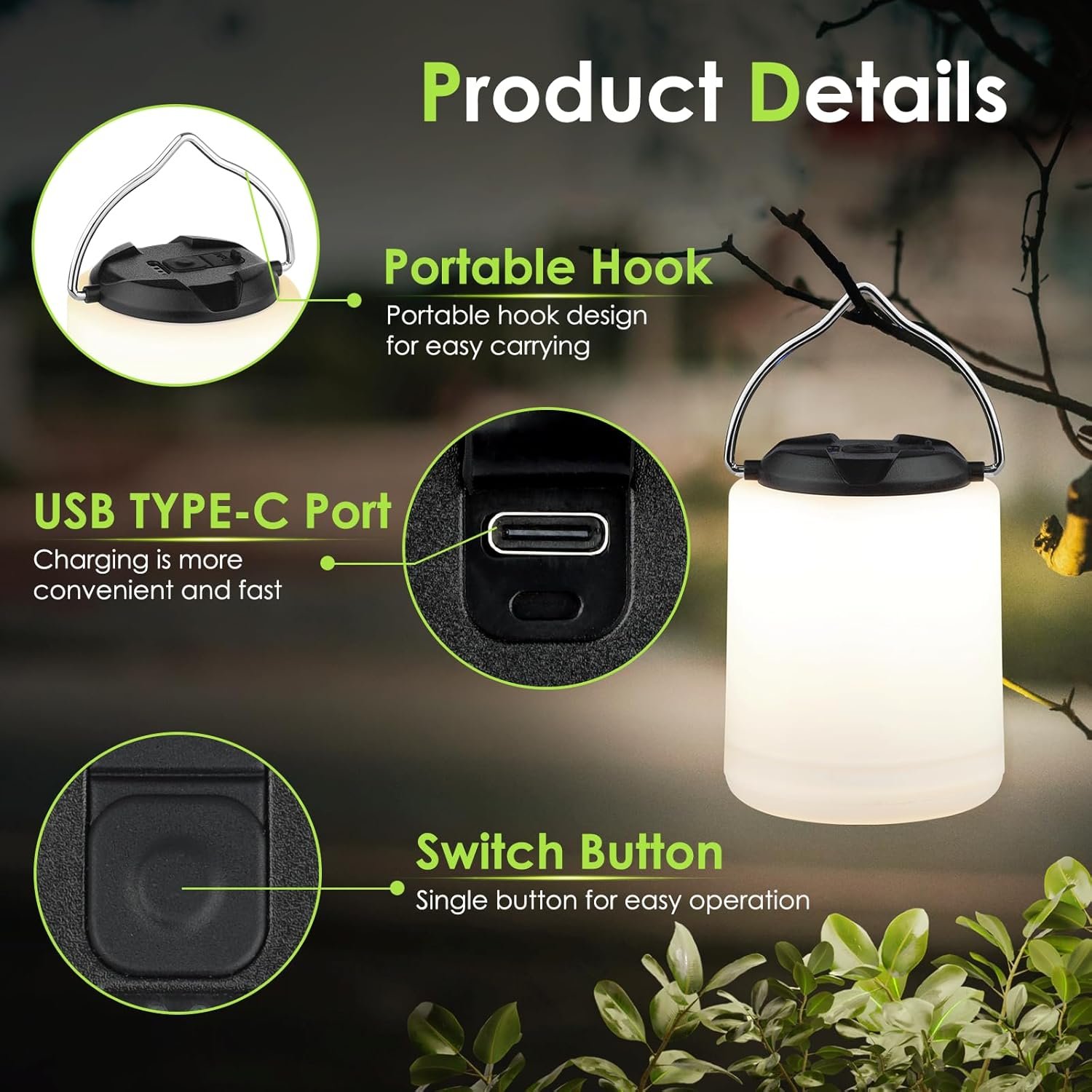 • Ultra-Portable Design: Weighing just 163g and measuring a compact 3.1 inches x 3.9 inches, this camping essentials lights epitomizes portability. Designed for adventurers who prioritize lightweight gear, it slips effortlessly into any backpack or pocket, ensuring you’re never burdened by bulky gear. With a handy hook on top, you can easily hang this led lantern lamp rechargeable from your travel backpack, tent, tree branch, or rope, allowing you to be hands-free during outdoor activities.