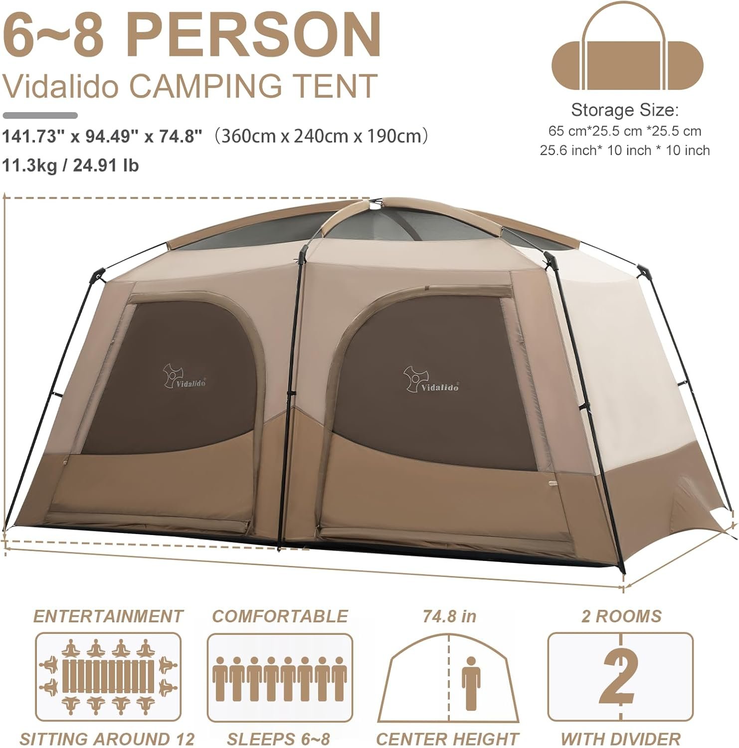Tents,6-8 Person Camping Tent with Extended Vestibule,2 Room Weather Resistant Family Tents,Easy Install Waterproof Outdoor Tent for Backpacking and Camping Hiking
